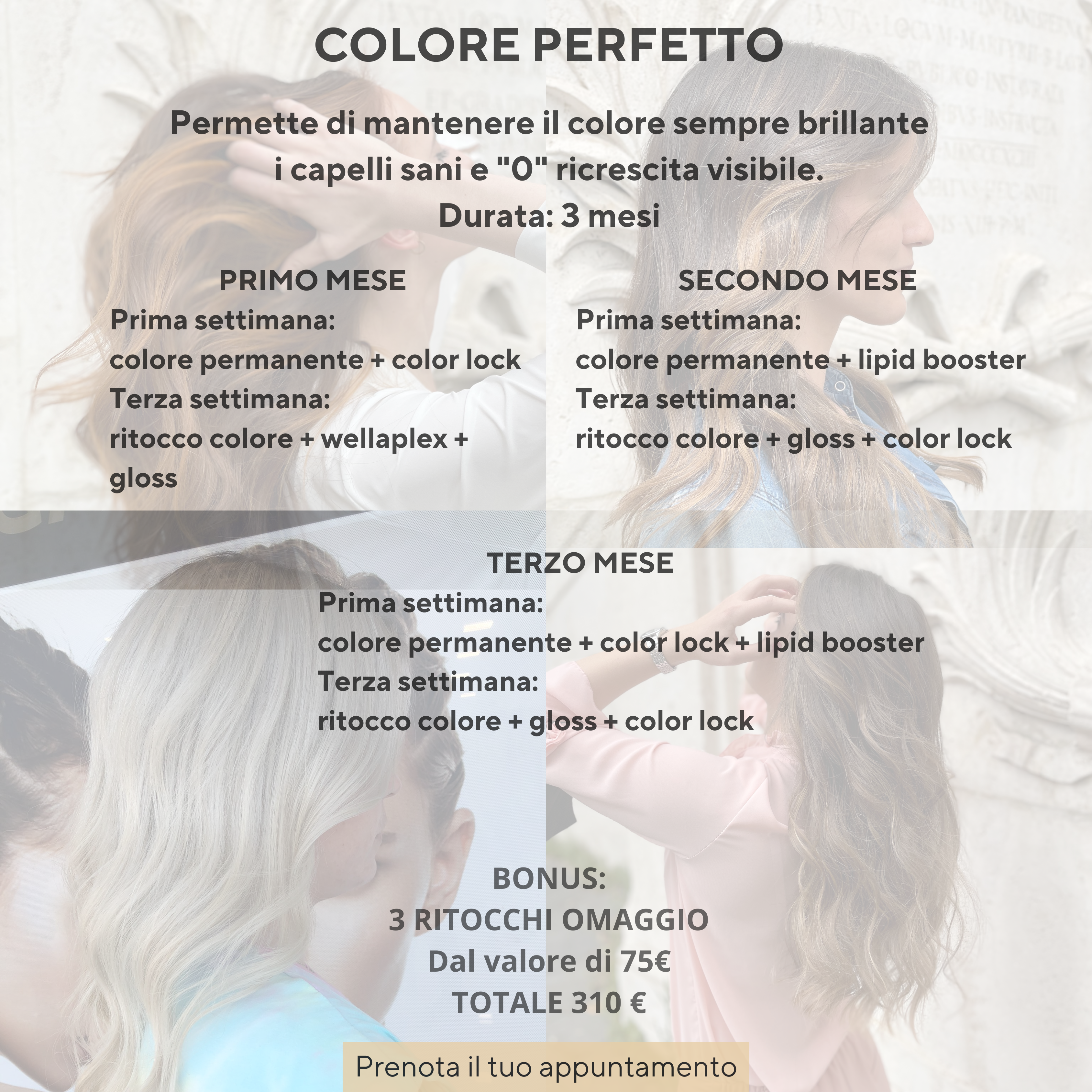 Un vero percorso di bellezza e mantenimento, pensato per chi tiene davvero alla qualità del proprio colore e alla salute del capello.